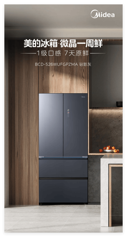 美的526微晶冰箱——微晶一周鲜科技,果蔬7天口感不变