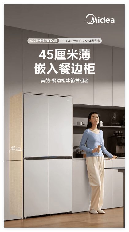 美的餐边柜冰箱——目前行业最薄的冰箱,主打美观、实用、不占地