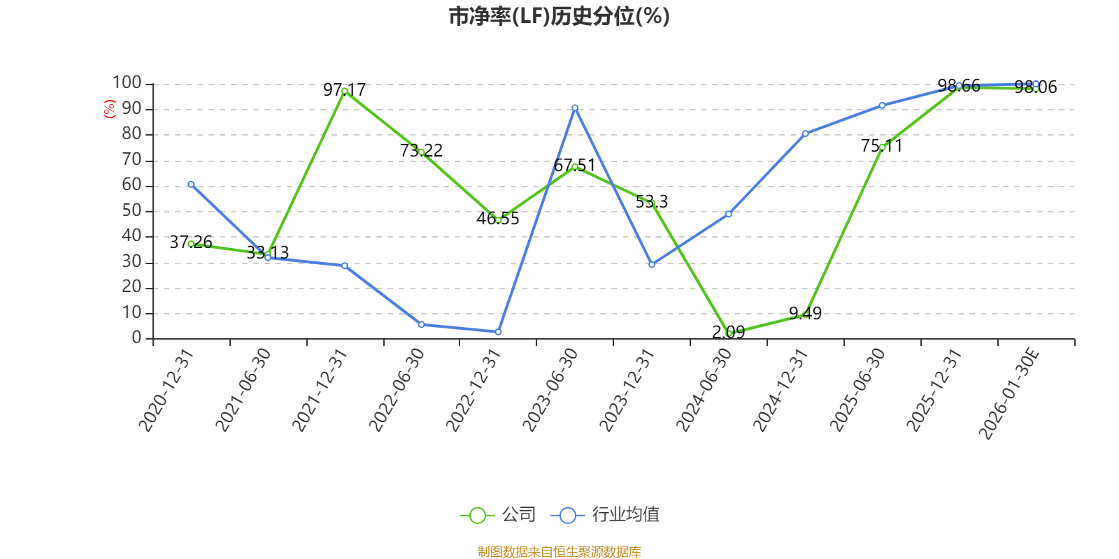 市盈率、市净率为负时,不显示当期分位数,会导致折线图中断。