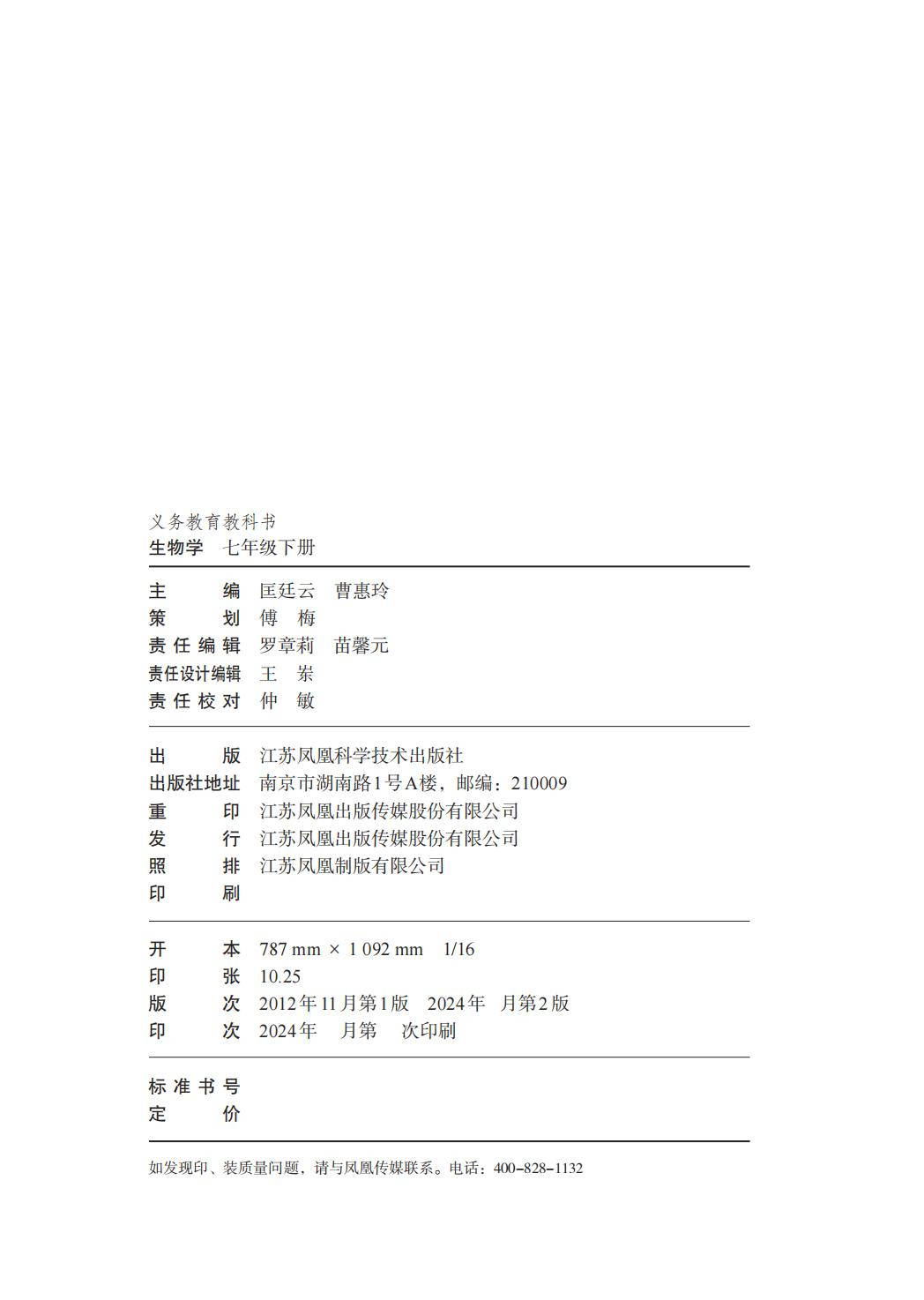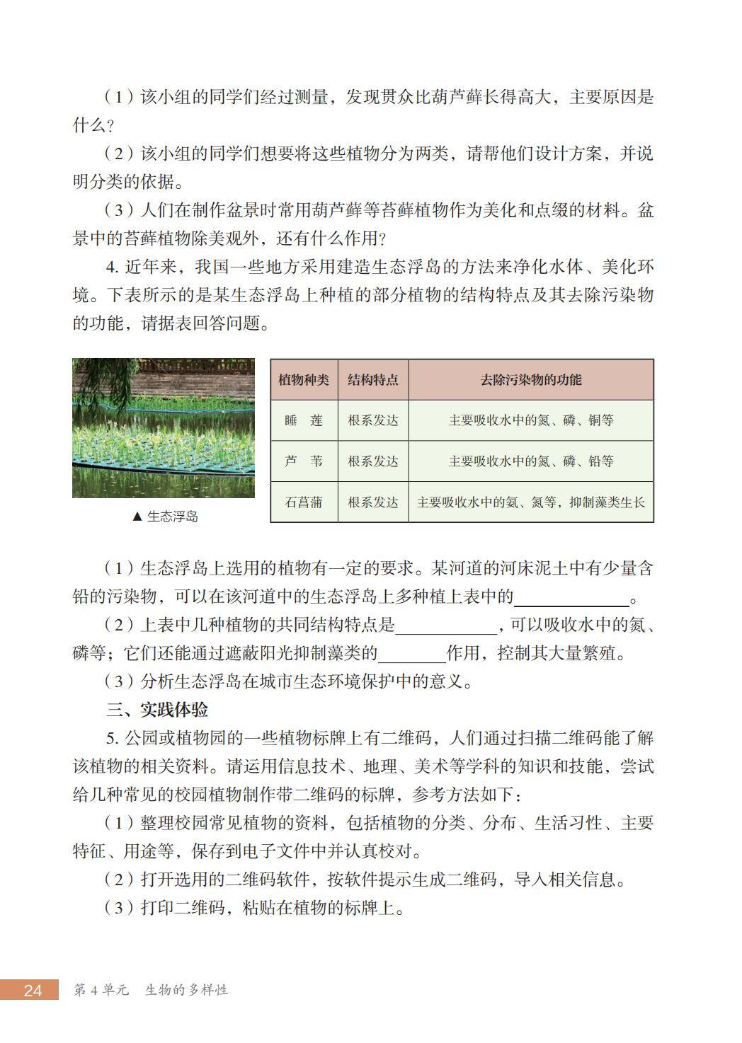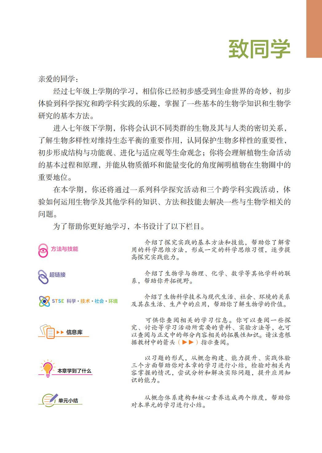 苏科版七年级生物下册电子课本图片版在线阅读