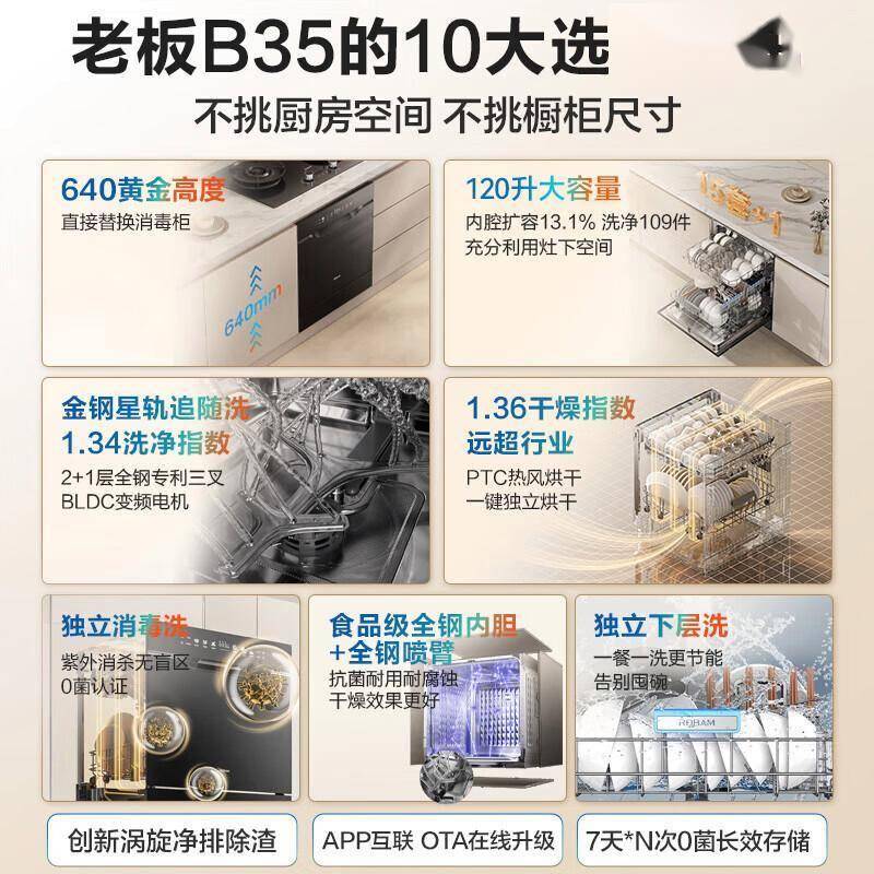 传统台式洗碗机像块“补丁”突兀地杵在台面上,而这款120L大容量嵌入式机型完美融入橱柜,关上柜门后根本看不出厨房多了件电器。它的高度设计符合亚洲厨房操作习惯,无需弯腰就能轻松取放餐具,对经常下厨的主妇/煮夫特别友好。