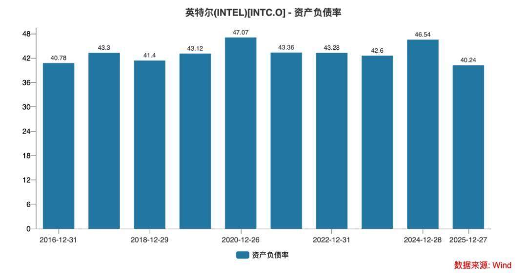 图:英特尔资产负债率情况 资料来源:Wind、36氪整理