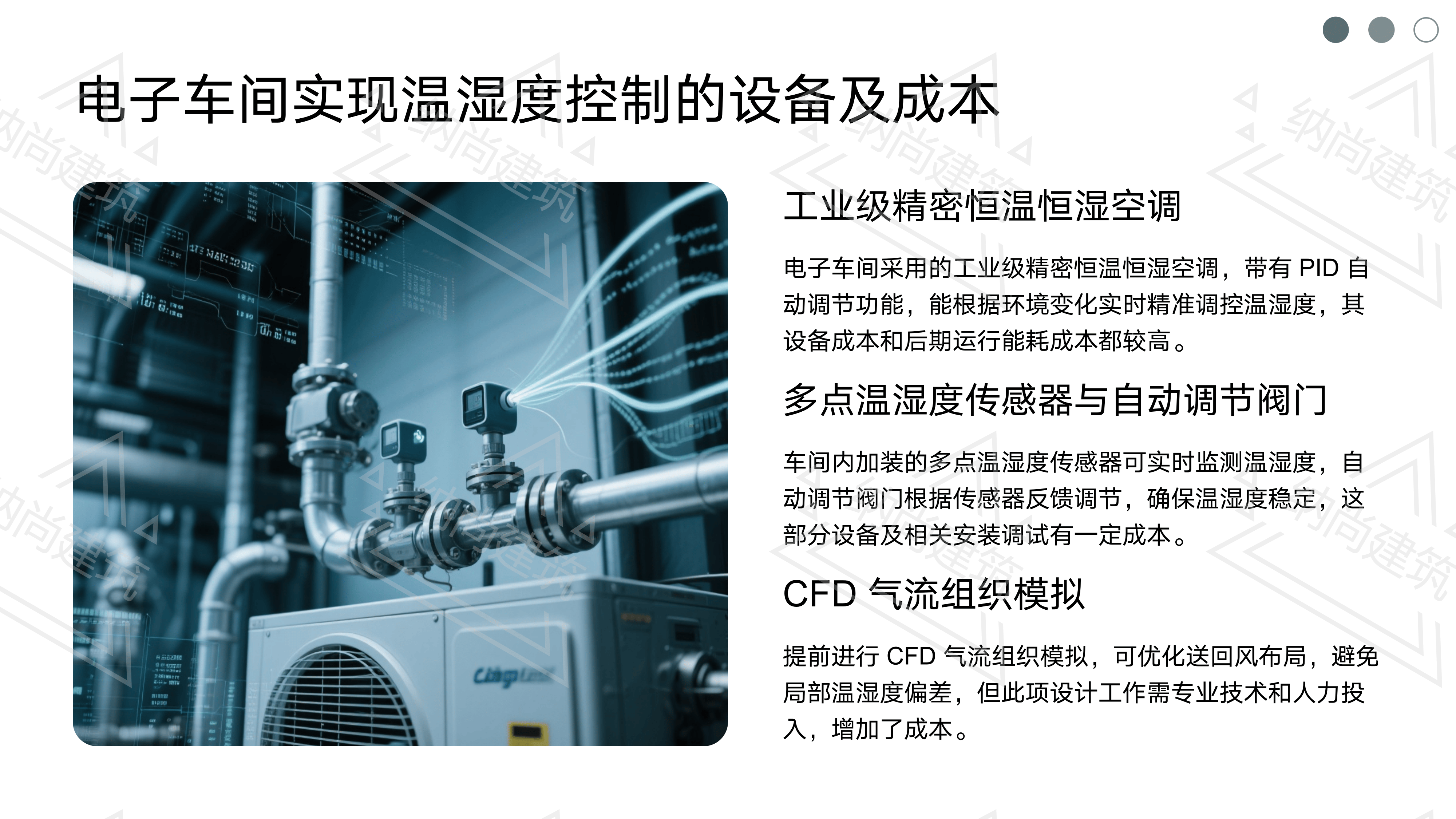 两者对温湿度的要求,不在同一个精度维度。精准度越高,对应的设备和自控系统成本就越高,这是电子车间比食品车间贵的另一大关键原因。