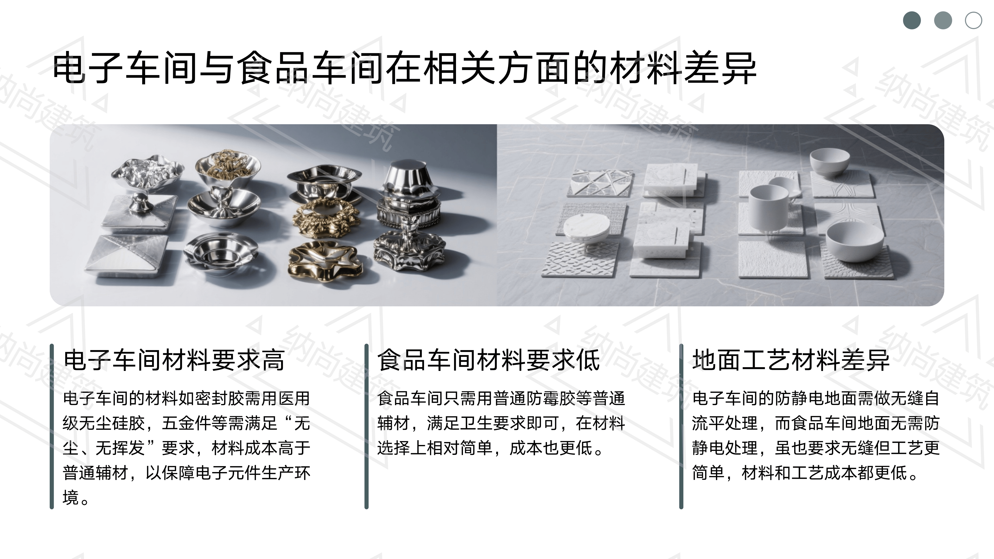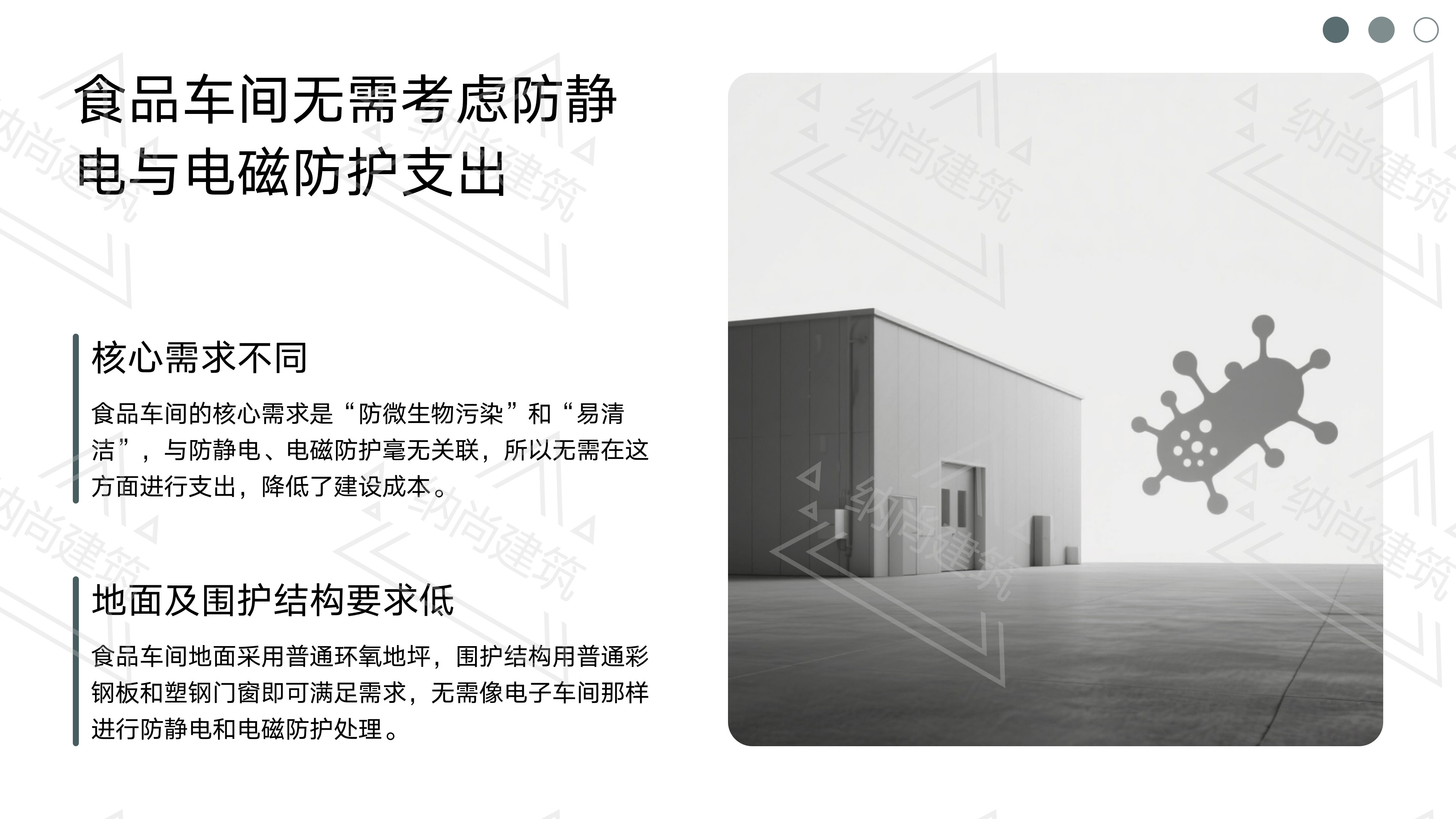 简单来说:食品车间是 “满足合规底线”,电子车间是 “追求极致稳定”。两者的建设需求不在一个维度,报价自然会差出一倍甚至更多。