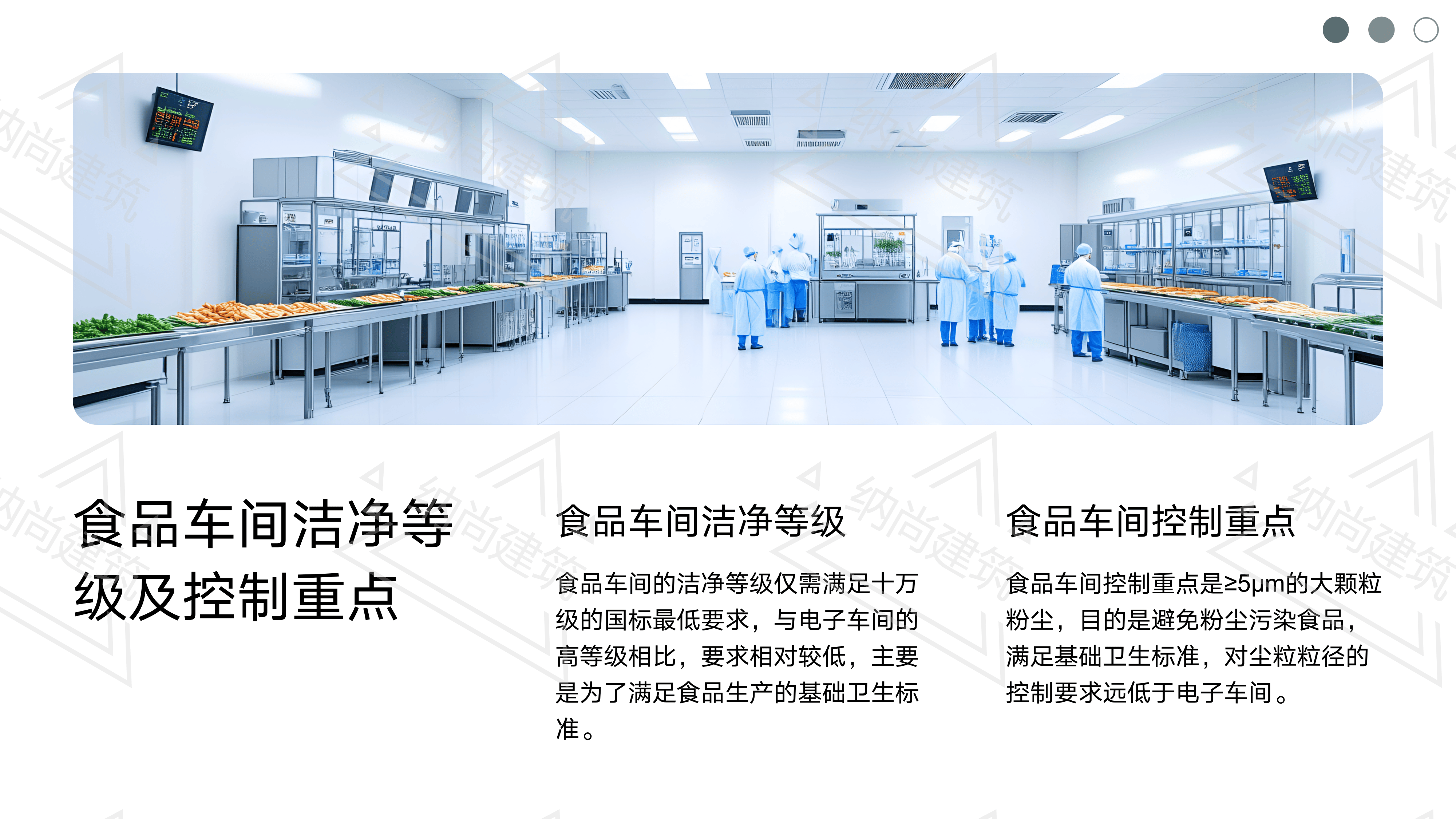 食品车间的核心建设目标是满足卫生标准的基础洁净环境,成本核心构成是基础风系统、普通围护结构和清洁型材料,价格低廉的原因是只需达到国标底线,无额外高端配置。