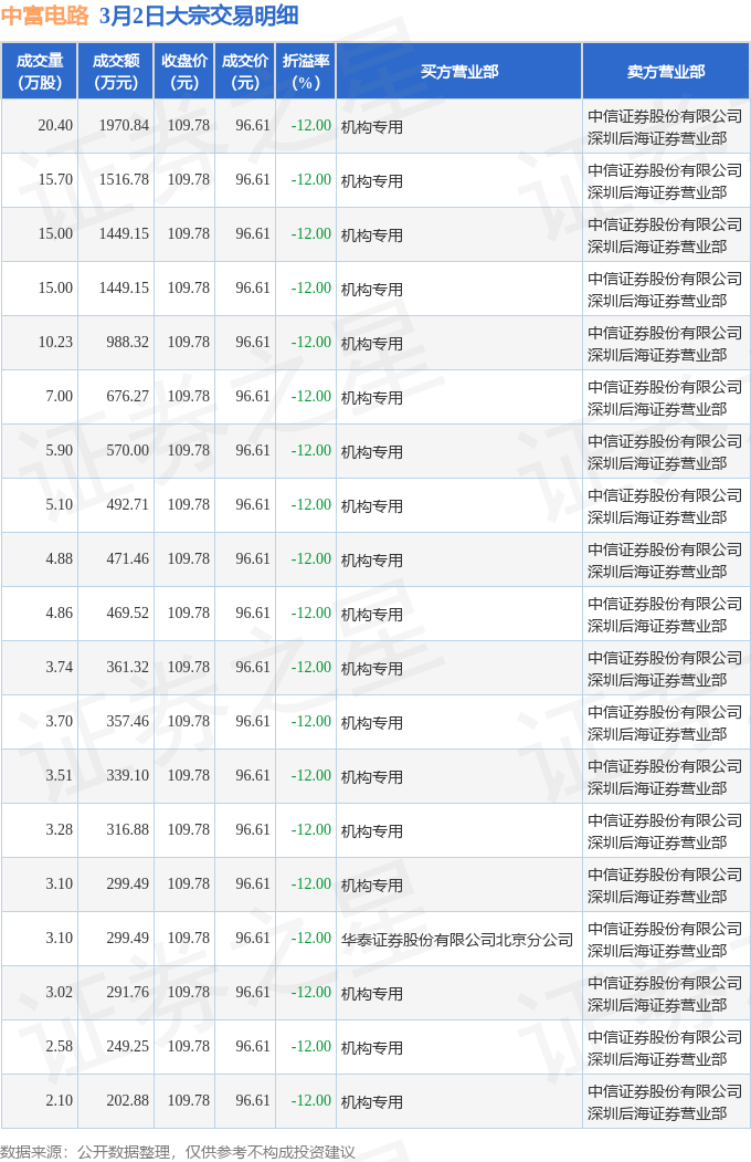 证券之星消息,3月2日中富电路发生大宗交易,交易数据如下: