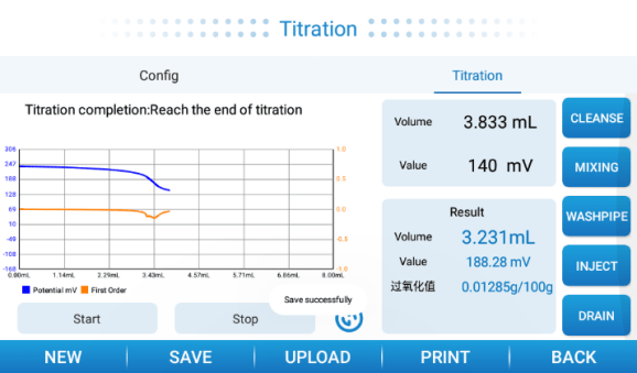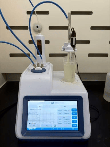 滴定:插入电极,设置参数后启动自动滴定程序。