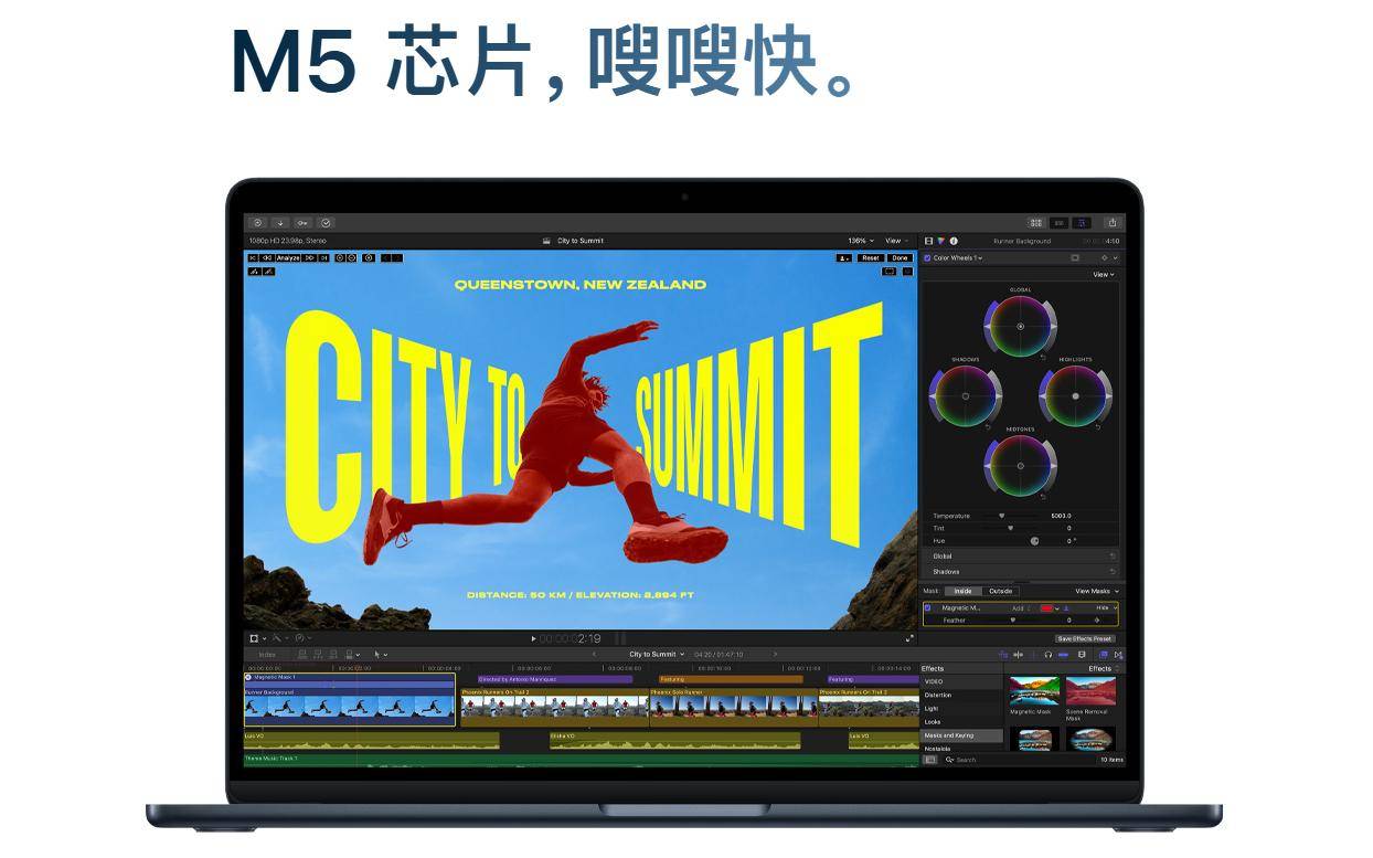 与2025年3月发布的上一代M4 MacBook Air相比,新款机型最显著的变化之一是存储容量的提升。M5 MacBook Air的起步存储从M4机型的256GB翻倍至512GB,最高可选配4TB固态硬盘。苹果硬件工程高级副总裁John Ternus表示,此举旨在回应用户对更大本地存储空间的需求。