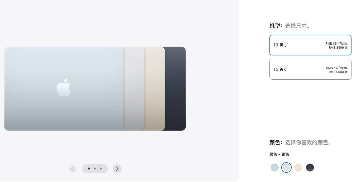 价格方面,新款13英寸MacBook Air的起售价为8499元人民币,较上一代M4机型的7999元上涨了500元。15英寸机型的起售价则维持在9999元,与上一代持平。两款新机型均提供天蓝色、午夜色、星光色和银色四种配色。