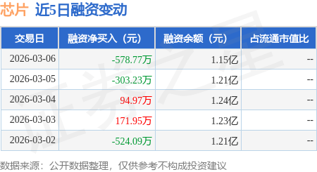 证券之星消息,3月6日,芯片(159813)融资买入1076.43万元,融资偿还1655.2万元,融资净卖出578.77万元,融资余额1.15亿元。