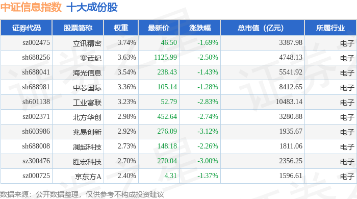 中证信息(000935)指数十大成份股详情如下: