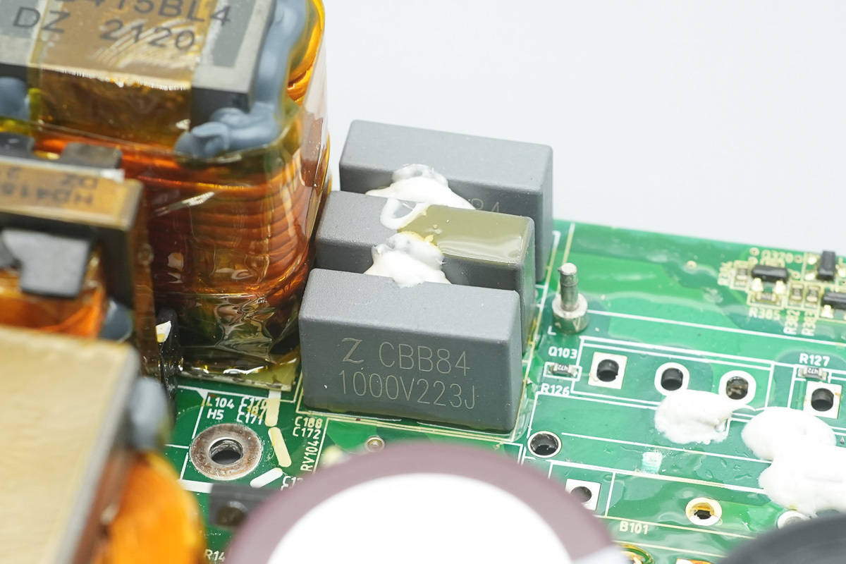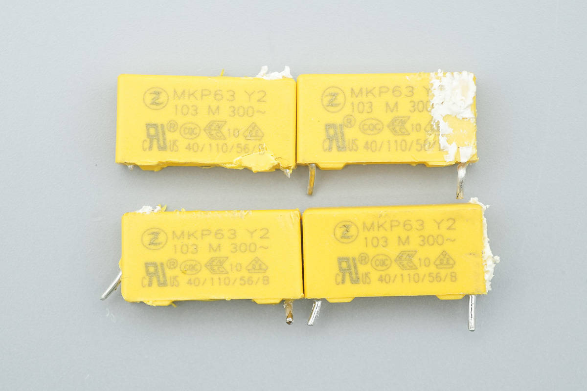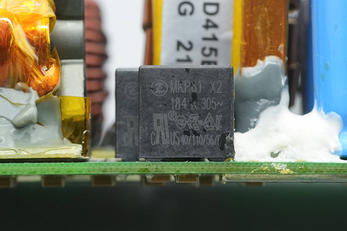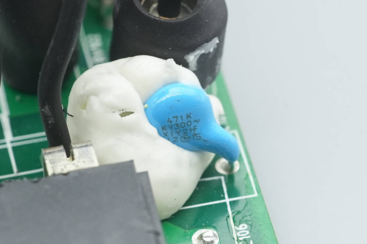 Y电容焊接在X电容底部,来自中星,规格为0.01μF。