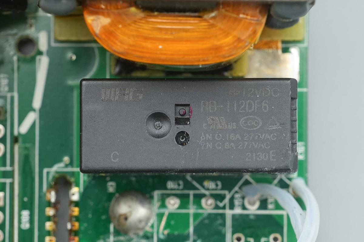 另一颗继电器来自旺荣电子,型号RB-112DF6,内置一组转换触点,触点容量为16A 277VAC,线圈电压为12V。