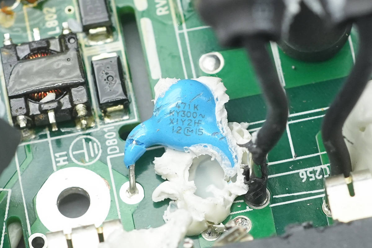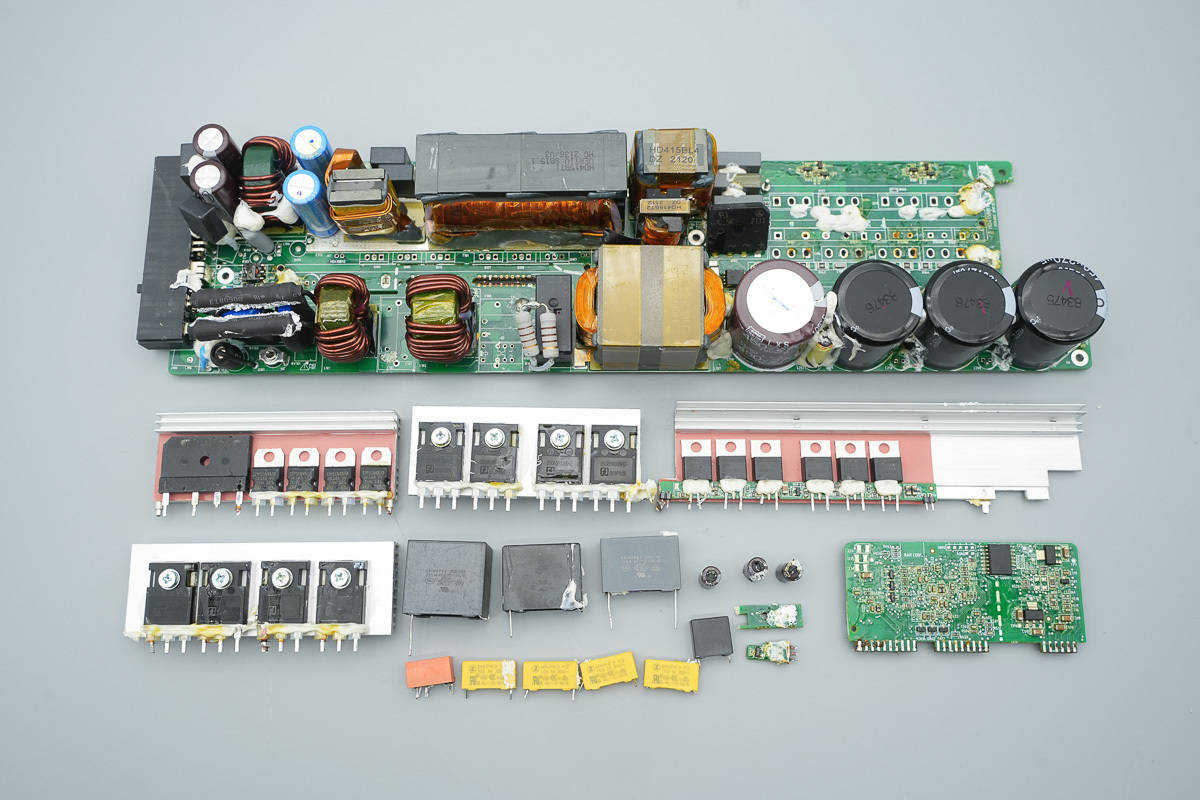 焊接拆下安规X2电容,散热片和控制小板,继续进行拆解。