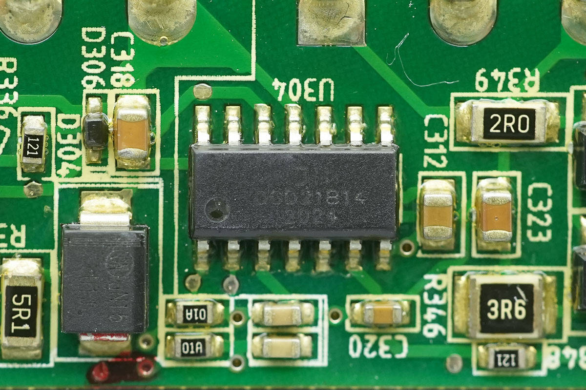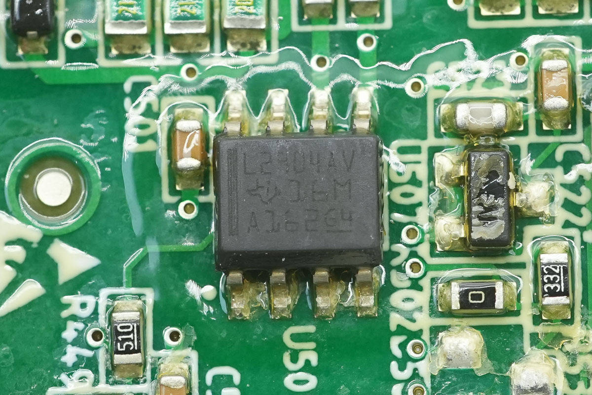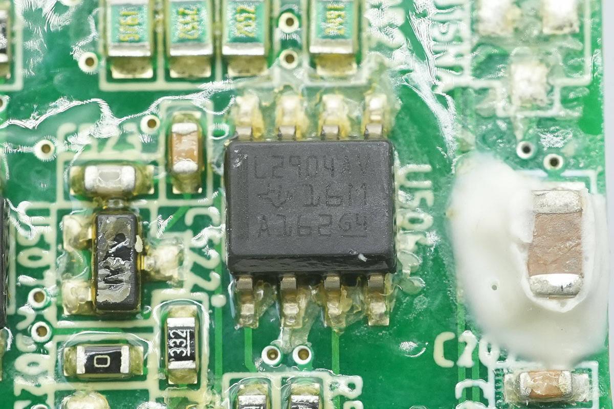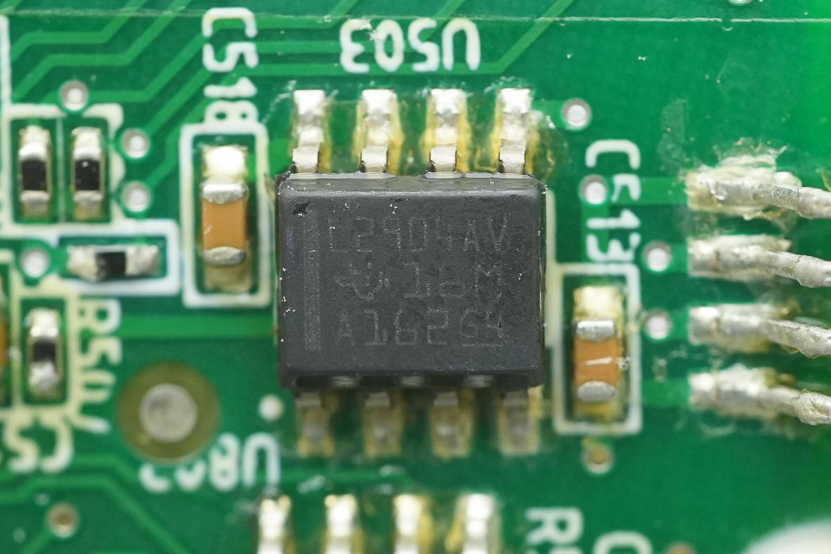 运放来自德州仪器,型号LM2904AV,是一颗标准双运放,支持3-30V工作电压范围,采用SOIC8封装。