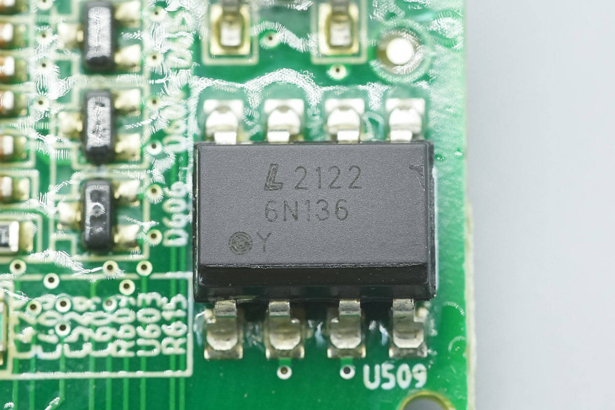 隔离光耦来自光宝,型号6N136,具备出色的交流和直流隔离能力,采用SOP-8封装。