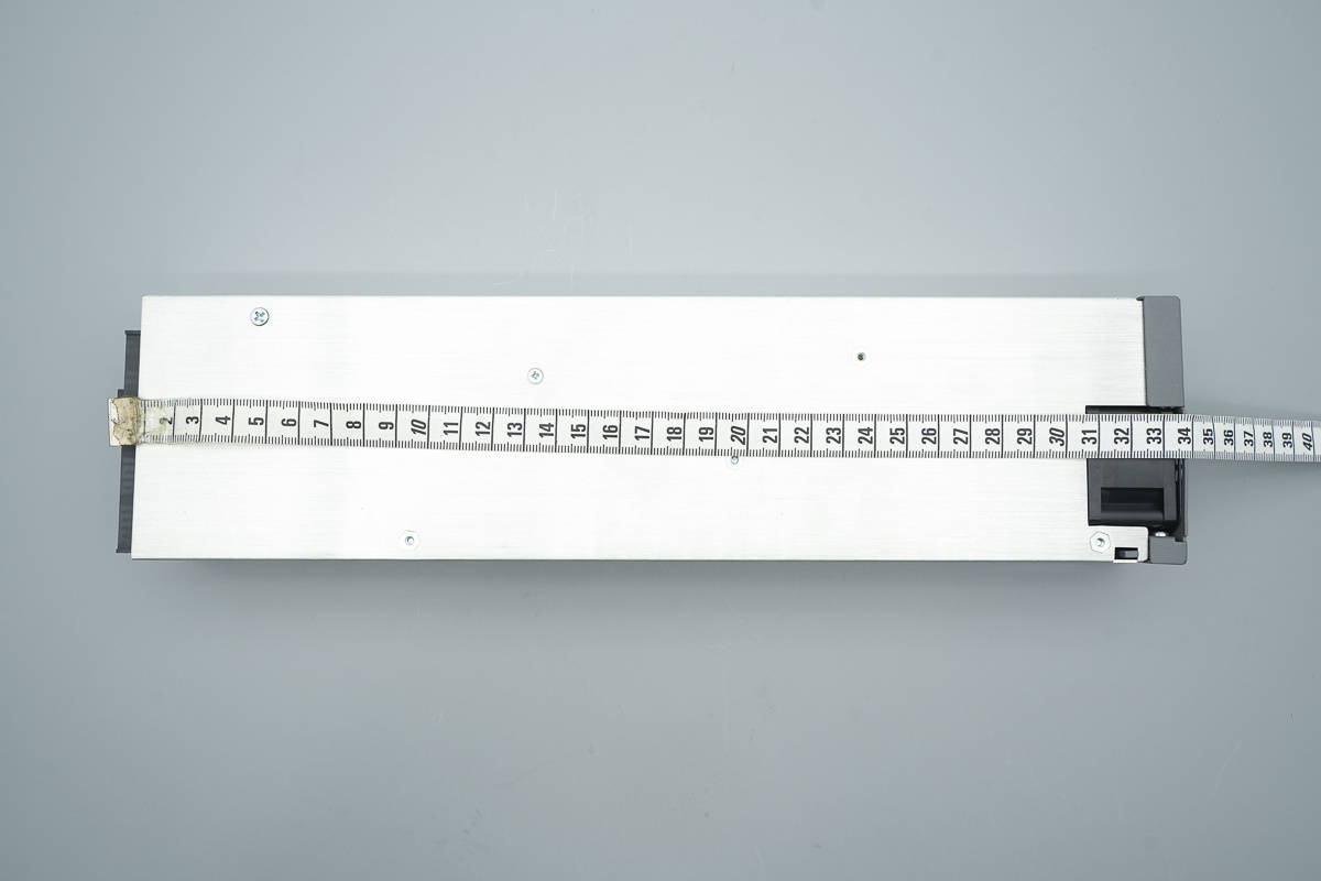散热片左侧设有谐振电容,谐振电感,辅助电源变压器。中间位置设有LLC变压器,滤波电感和滤波电容。右侧上方为直流输出端,与交流输入共用连接器。左侧中间位置设有控制小板和同步整流管散热片。