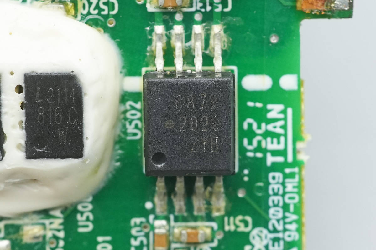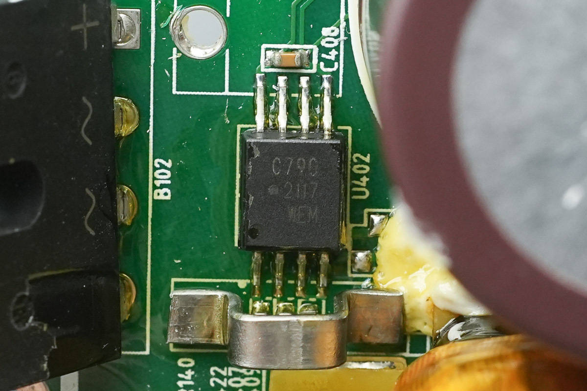 隔离放大器来自博通,型号ACPL-C790-500E,用于隔离电流检测,采用SO-8封装,下方设有电流检测电阻。