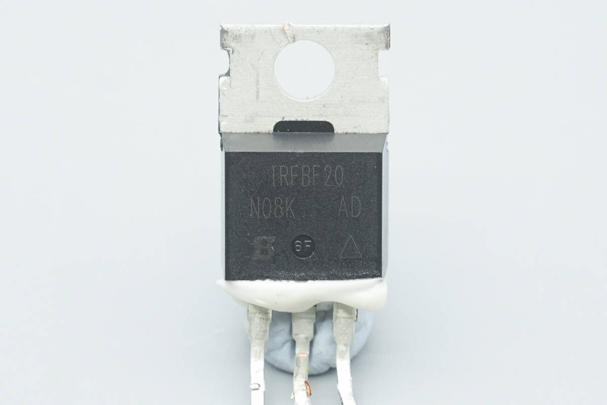 辅助电源开关管来自威世,型号IRFBF20,NMOS,耐压900V,导阻8Ω,采用TO-220AB封装。