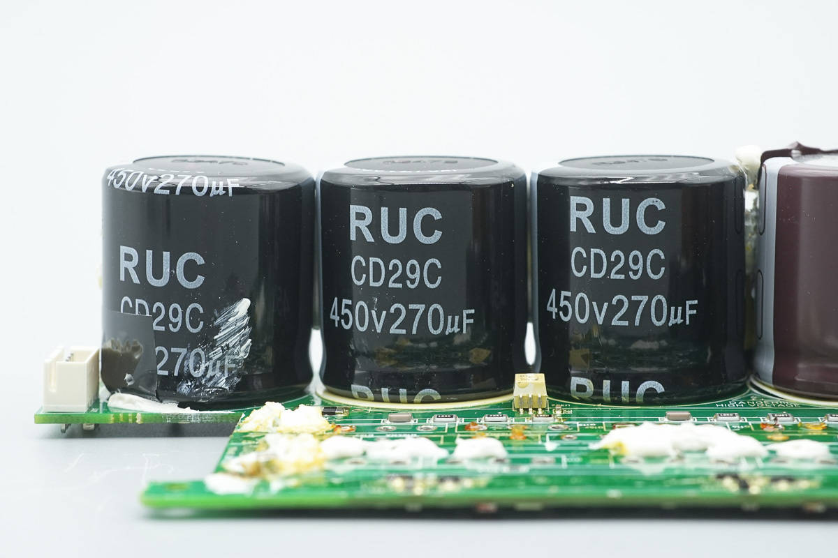 三颗滤波电容来自瑞友康,为CD29C系列,规格为450V270μF。