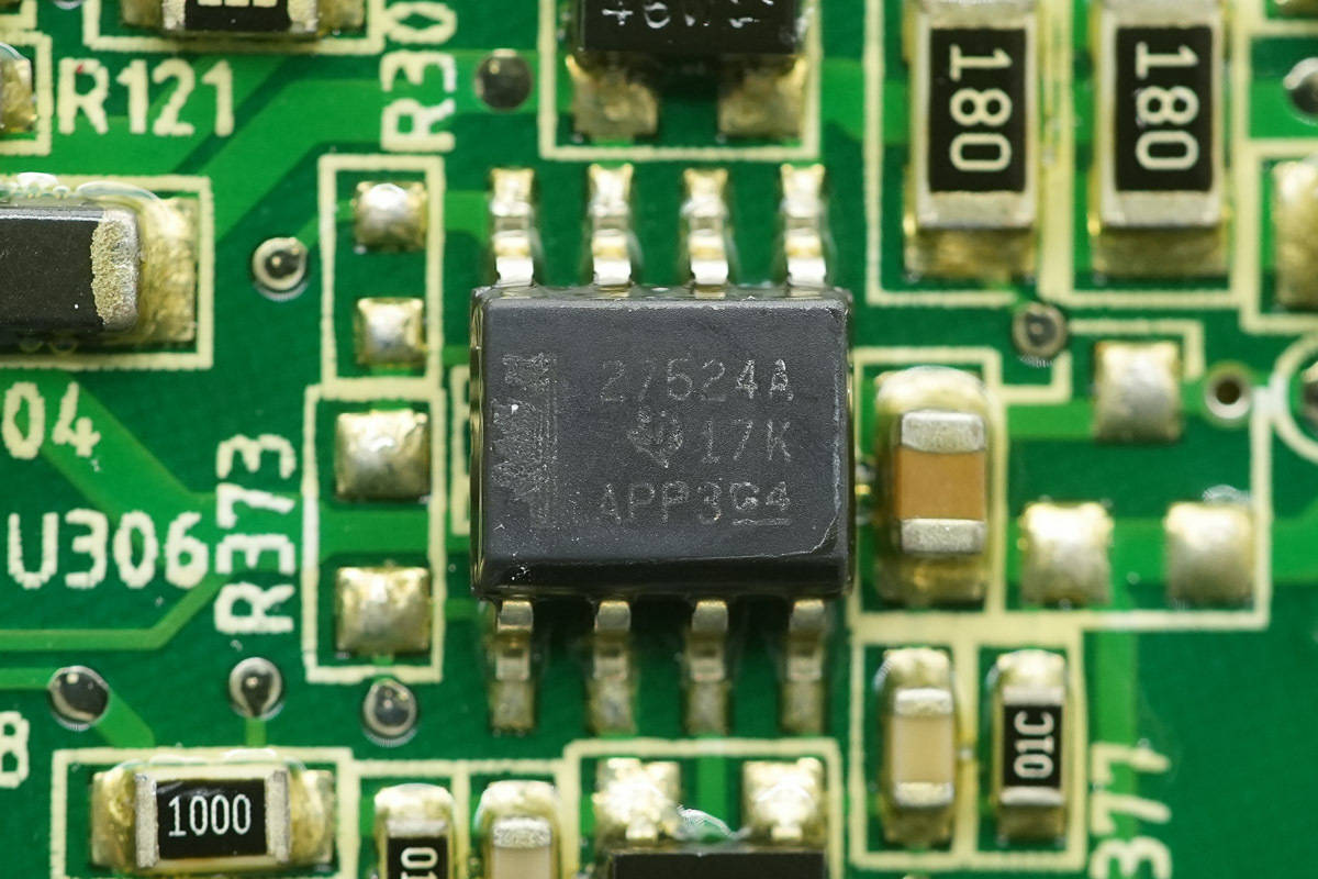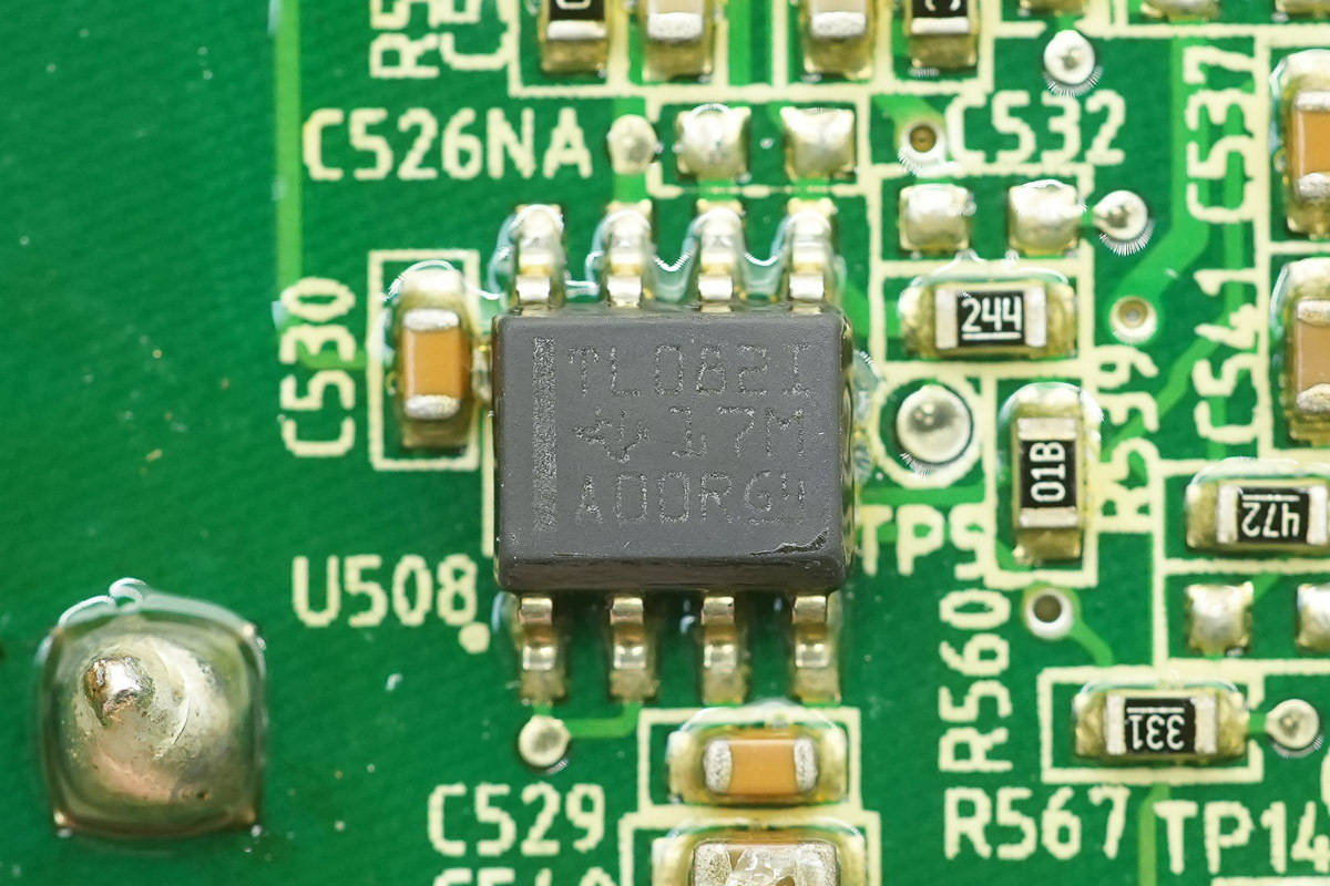 运放来自德州仪器,型号TL082I,是一颗FET输入双运放,支持30V工作电压,采用SOIC8封装。