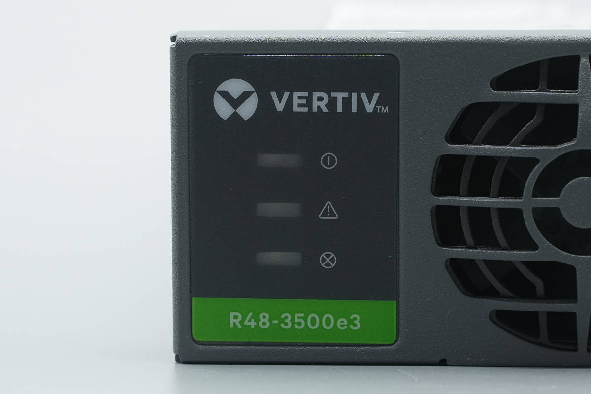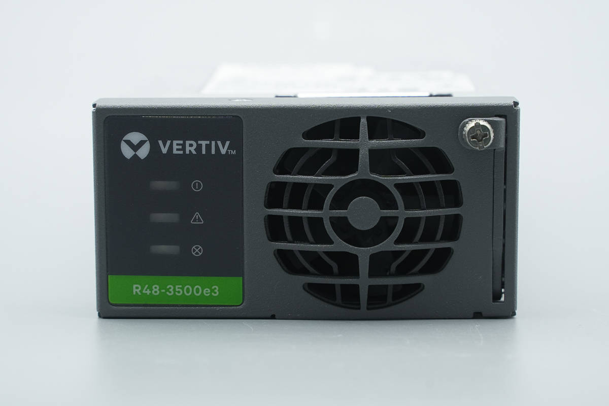 左侧铭牌印有VERTIV品牌,下方设有指示灯,底部印有模块型号R48-3500e3。