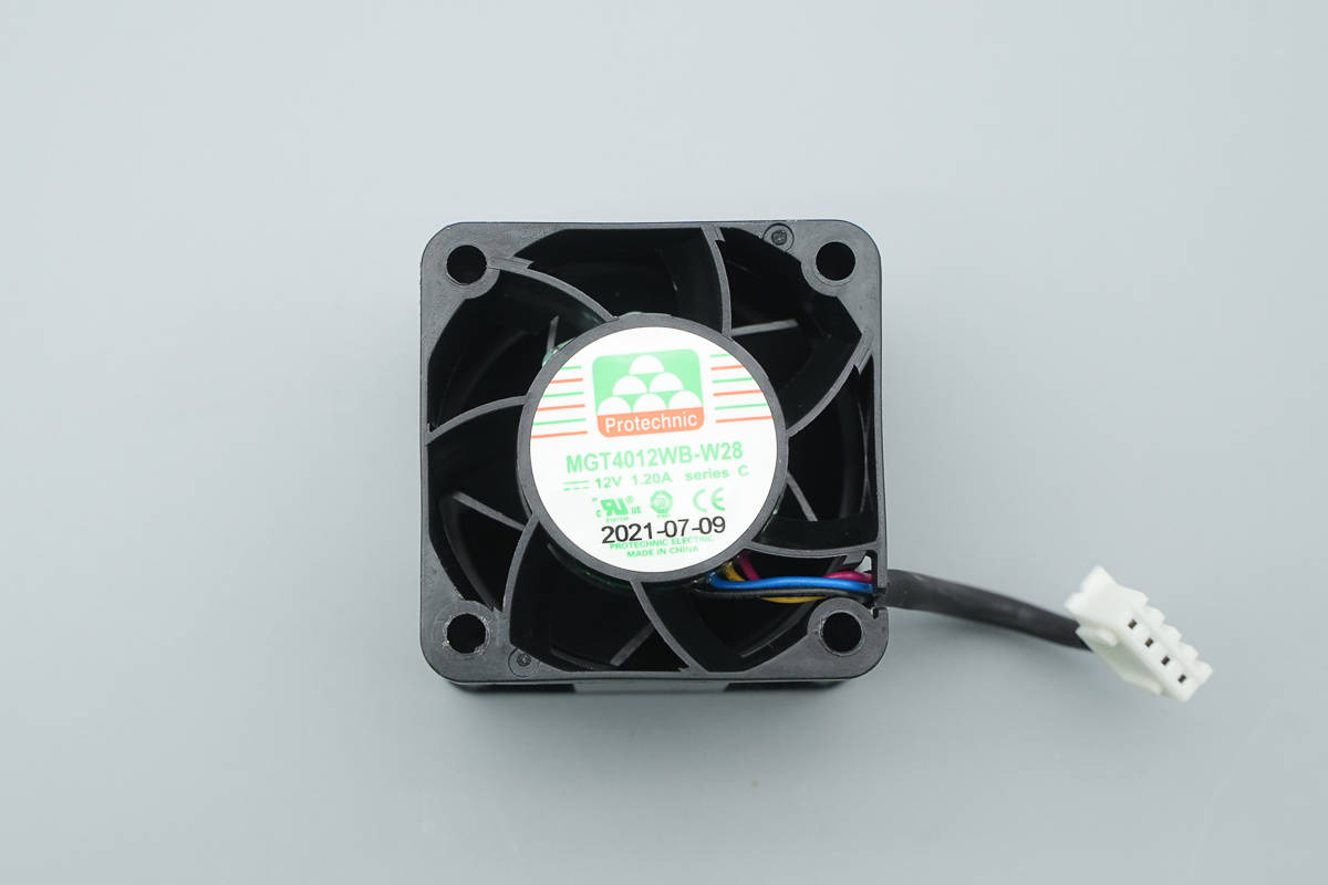散热风扇来自永立,型号MGT4028WB-W28,规格为12V 1.2A,并设有静叶片。