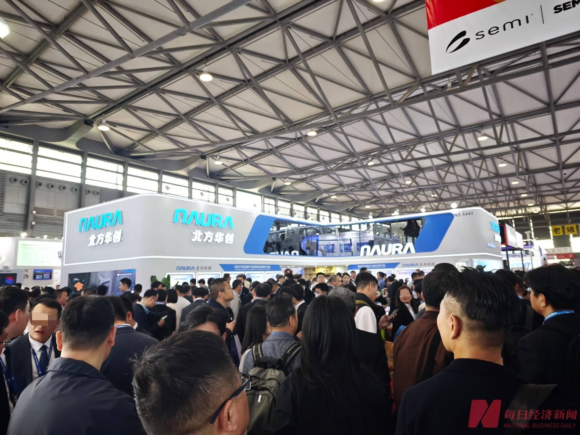北方华创展台前人头攒动 图片来源:每经记者 朱成祥 摄