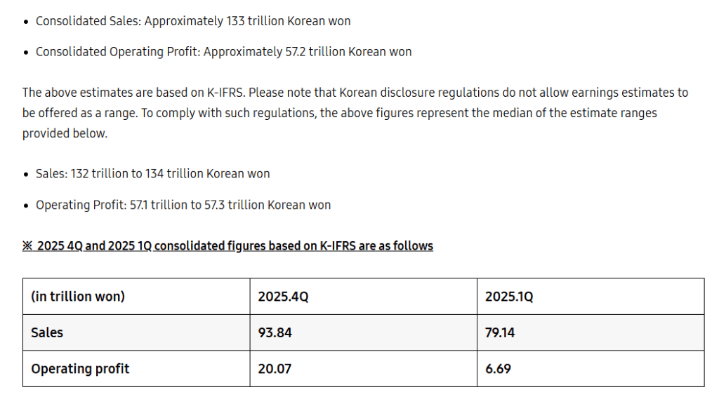 4月7日,三星电子在首尔发布2026年一季度业绩预告。据三星官方公告,公司预计今年1月至3月合并营业利润约为57.2万亿韩元(约合379亿美元),同比增长逾8倍——去年同期仅为6.69万亿韩元。