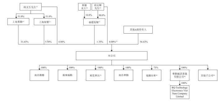 截至最后实际可行日期,邱文生、上海奥勤、上海海贤、邱文辉、林敏及福建悦翔合计拥有公司约43.37%的表决权,为公司控股股东集团。