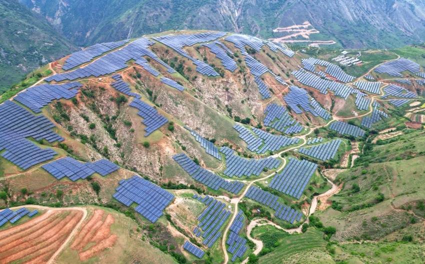 过去,这片河谷荒山裸露、植被稀疏,生态脆弱与资源匮乏严重制约着当地发展。近年来,红河县凭借其得天独厚的光热资源和丰富的日照时间,抢抓“碳达峰、碳中和”战略机遇,大力发展光伏发电产业。如今,连片的光伏板在山间绵延铺展,整齐有序地镶嵌在起伏的山峦之上,曾经的“火炉河谷”已成为“光电热土”。