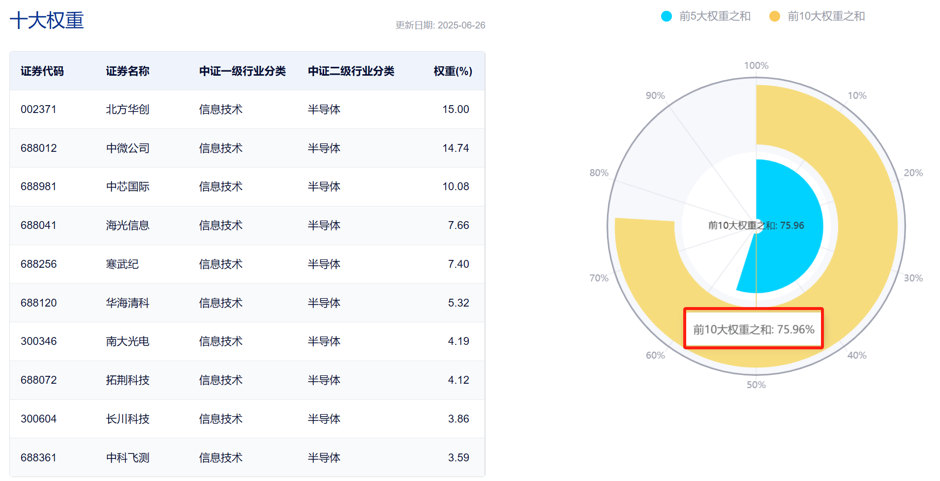 虽然不知道屹唐股份上市后会不会被纳入指数,但目前中国半导北方华创、中微公司两大重仓股占比超过29%,还包含其他设备领军企业和沪硅产业、安集科技等材料龙头,一键布局产业关键环节。