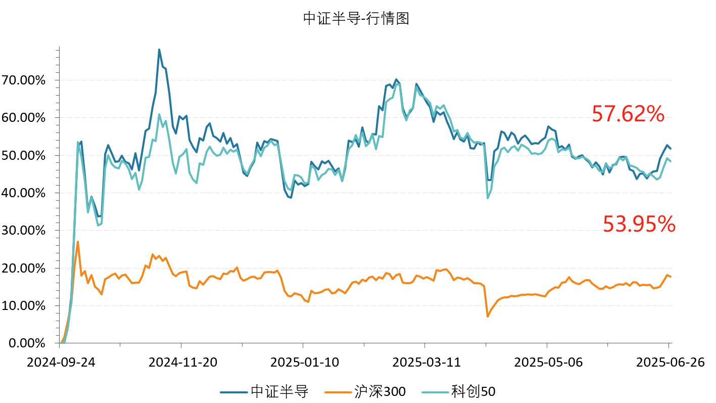 而且设备环节位于半导体产业链最上游,景气度对行业周期高度敏感,具备强贝塔属性。数据显示,中证半导自去年9月24日以来涨幅高达57.62%,跑赢科创50指数约4%,弹性更优。