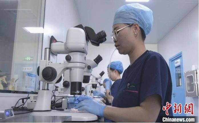 图为仇春娟在实验室进行卵细胞处理。 蔡青春 摄