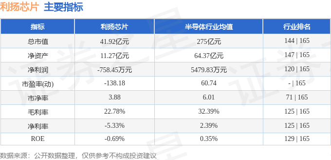 利扬芯片2025年一季报显示,公司主营收入1.3亿元,同比上升11.22%;归母净利润-758.45万元,同比下降2340.63%;扣非净利润-748.57万元,同比下降705.24%;负债率56.06%,投资收益130.27万元,财务费用1095.23万元,毛利率22.78%。利扬芯片(688135)主营业务:集成电路测试方案开发、晶圆测试服务、芯片成品测试服务以及与集成电路测试相关的配套服务。