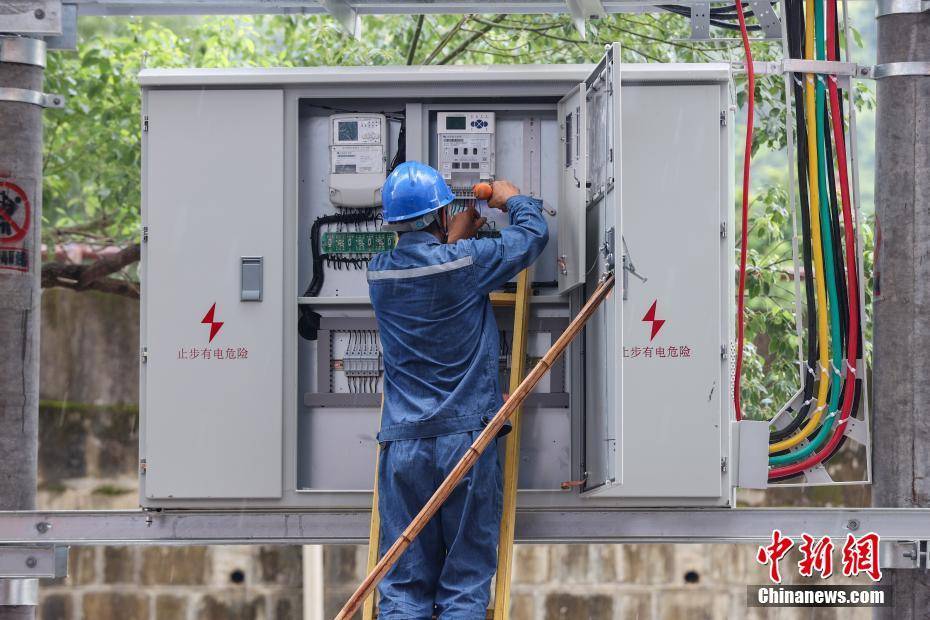2025年6月底,受持续强降雨及上游来水叠加影响,贵州省黔东南苗族侗族自治州榕江县境内多条河流水位持续快速上涨,引发洪灾。灾情发生以来,各方救援力量全力抢险救灾,加快灾后重建。目前该县生产生活秩序逐渐恢复,县城重新焕发出生机与活力。中新社记者时隔14日再次来到榕江探访灾区民众生产生活情况。图为7月10日,贵州电网凯里供电局工作人员在维修电力设备。中新社记者 瞿宏伦 摄