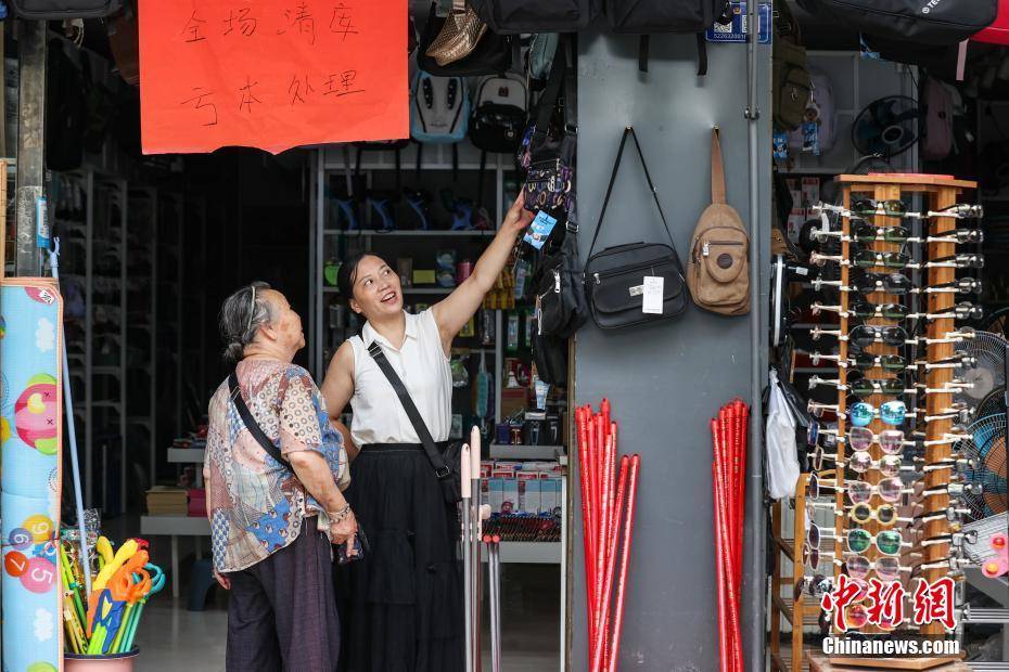 2025年6月底,受持续强降雨及上游来水叠加影响,贵州省黔东南苗族侗族自治州榕江县境内多条河流水位持续快速上涨,引发洪灾。灾情发生以来,各方救援力量全力抢险救灾,加快灾后重建。目前该县生产生活秩序逐渐恢复,县城重新焕发出生机与活力。中新社记者时隔14日再次来到榕江探访灾区民众生产生活情况。图为7月10日,贵州榕江县城一商户在为顾客介绍产品。中新社记者 瞿宏伦 摄