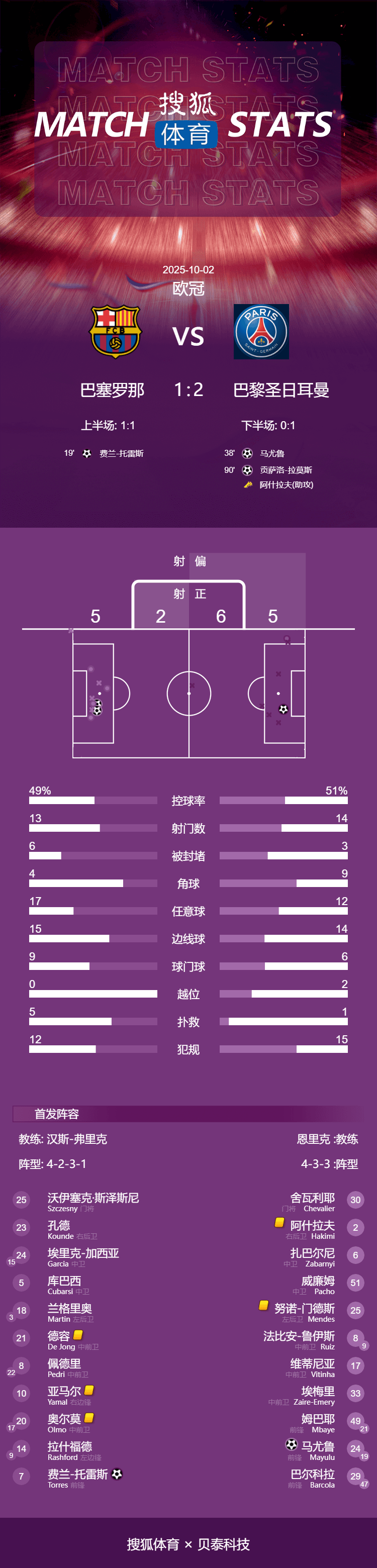 欧冠-费兰建功拉莫斯第90分钟... 北京时间10月2日凌晨,2025-26赛季欧冠联赛阶段次轮,巴萨主场迎战卫冕冠军巴黎圣日耳曼。第19...