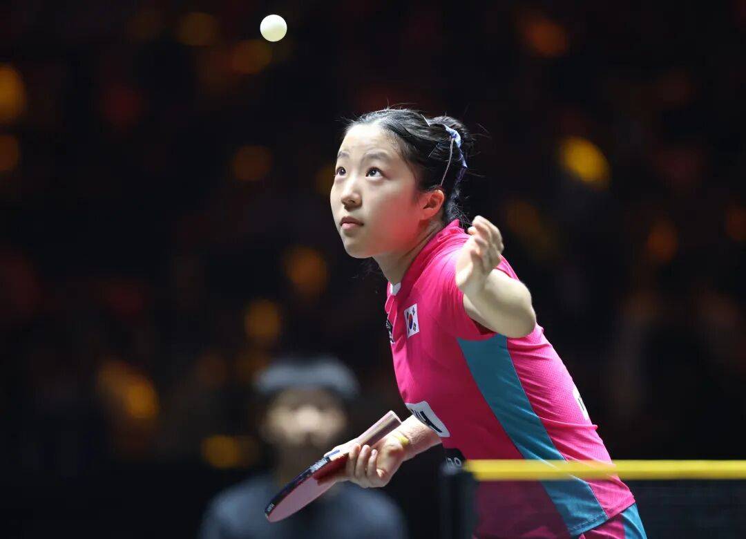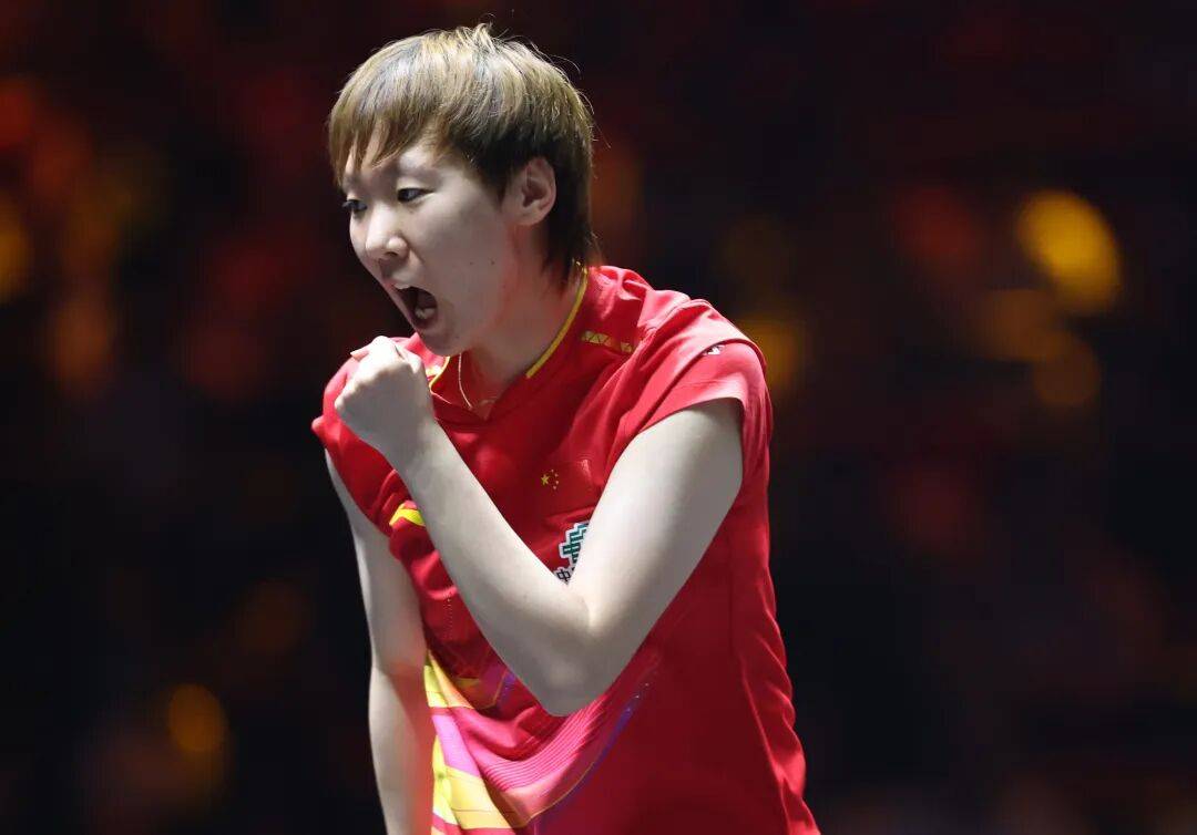 另外一场女单半决赛,王曼昱顶住了韩国选手申裕斌的冲击,以4比1胜出。申裕斌在前三局乃至第四局的中段一直通过积极调动,在近台给王曼昱制造压力。她主打的战术是抢点快,出手重,增加发长球的比例,只要有机会加力就打得很凶。王曼昱对冲对方质量的同时,在第四局后半段从其正手位突破,扰乱了申裕斌的站位,迫使对手在主动进攻时降低了命中率。随后,申裕斌只有凌乱的搏杀,而王曼昱越则打得淡定,非常有耐心地终结了比赛。