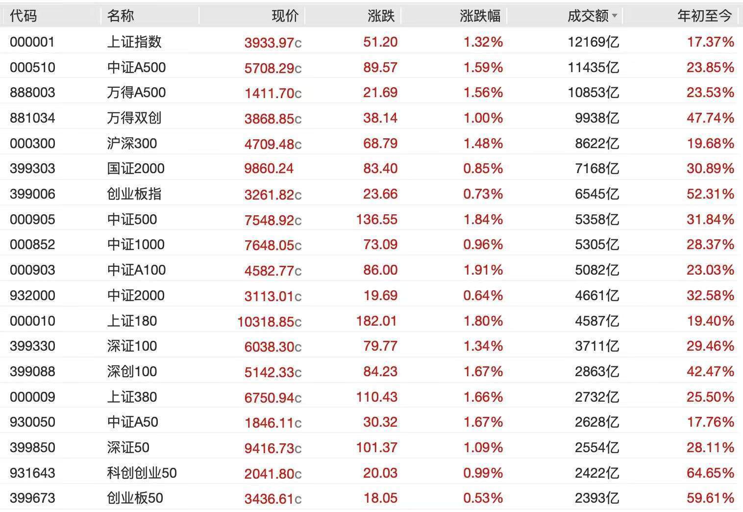 成份股指数方面,沪深300指数涨1.48%,中证500指数涨1.84%,中证A100涨1.91%。值得一提的是,科创50指数上涨2.93%,盘中一度涨超6%,在成份股指数中遥遥领先,成为当天行情中的“领头羊”。