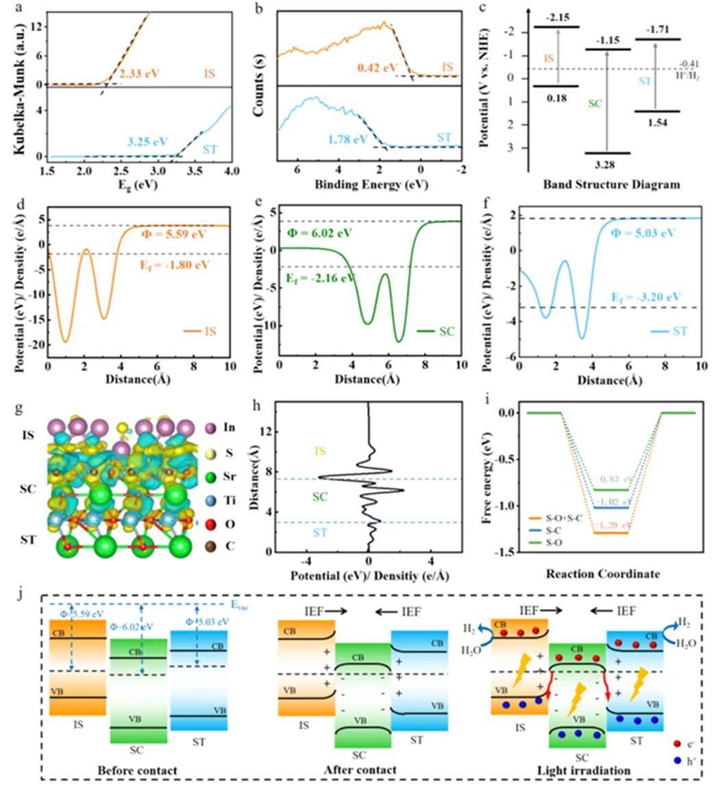 此外,将 Δρ与平面平均电荷密度、沿法向积分的累积电荷曲线或静电势差ΔV(z) 并置,可进一步量化界面偶极强度与电场方向,为能带弯曲与功函数变化提供佐证。