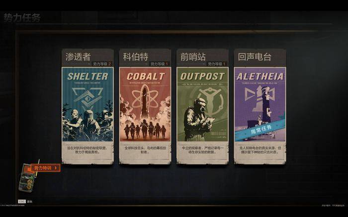 设计上,项目组尽量避免了去“教”玩家玩游戏,游戏中出现了“渗透者”“科伯特”“前哨战”“回声电台”这几个势力,局内玩家可以做各个势力的任务,每个势力大致对应一种玩法倾向——但游戏不会把玩家塞进这些势力中,强行教他们怎么玩。这从二测的实际体验中也能感受到,玩家在单局中是很自由的,就连任务也是在完成后才显示,而不会被要求必须做任务。