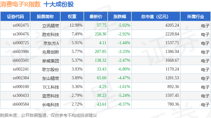 资金流向方面,消费电子R(480030)指数成份股当日主力资金净流出合计59.7亿元,游资资金净流入合计10.79亿元,散户资金净流入合计48.92亿元。成份股资金流向详情见下表: