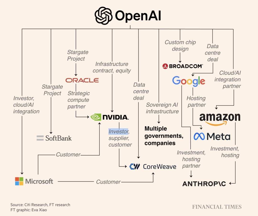 再加上,此前与云服务巨头甲骨文、CoreWeave签下的大单,万亿美元算力关系网已悄然形成。