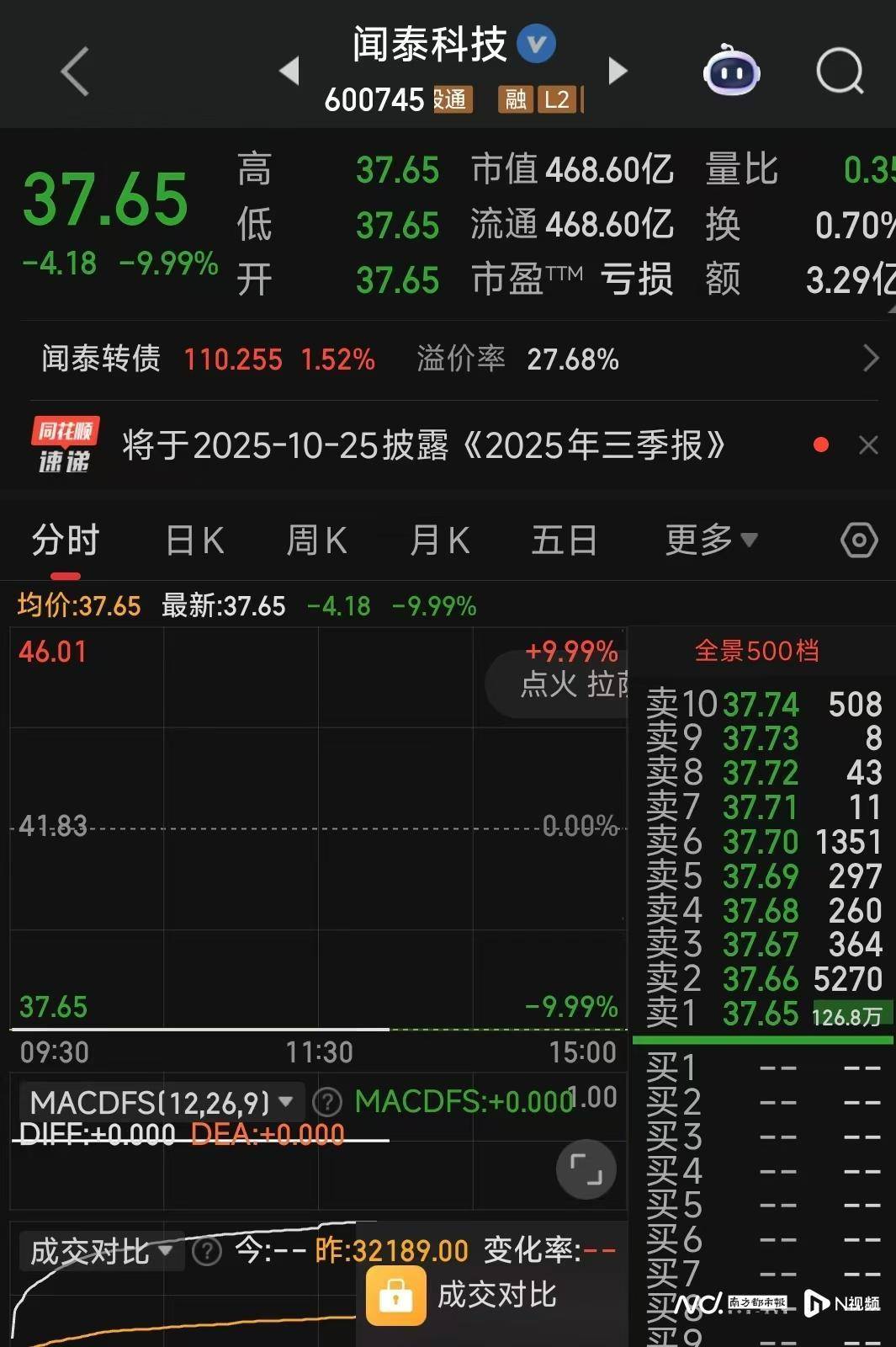 受子公司安世半导体控制权暂时受限影响,10月14日,闻泰科技(600745.SH)再度跌停,报收37.65元/股,总市值468.6亿元。