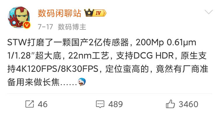 思特威SCC80XS预计会用作高端机的主摄和副摄,不过虽然这款传感器面积够大,但其动态范围为85dB,对比目前旗舰传感器并无优势。数码闲聊站也爆料称,有厂商准备将这颗传感器用作长焦。