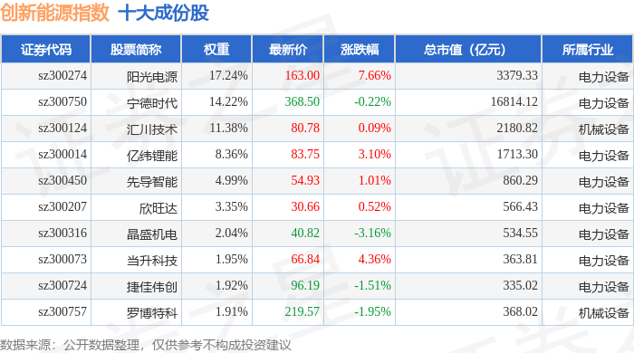 创新能源(399266)指数十大成份股详情如下: