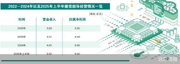 财务数据显示,2022—2024年以及2025年上半年,健信超导实现的营业收入分别为3.59亿元、4.51亿元、4.25亿元、2.52亿元;归属净利润分别为3463.5万元、4873.47万元、5578.39万元、3191.84万元。