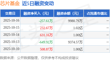 证券之星消息,10月16日,芯片基金(159801)融资买入1780.66万元,融资偿还2038.27万元,融资净卖出257.61万元,融资余额9980.79万元,近20个交易日中有11个交易日出现融资净买入。