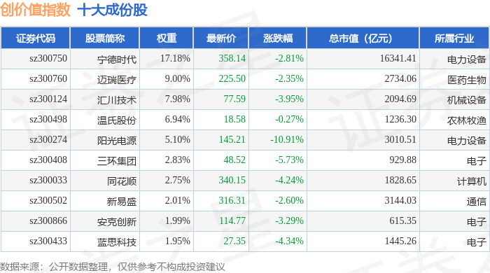 证券之星消息,10月17日,创价值(399295)指数报收于5291.04点,跌3.64%,成交983.3亿元,换手率2.47%。当日该指数成份股中,上涨的有2家,华测检测以0.49%的涨幅领涨,下跌的有48家,阳光电源以10.91%的跌幅领跌。